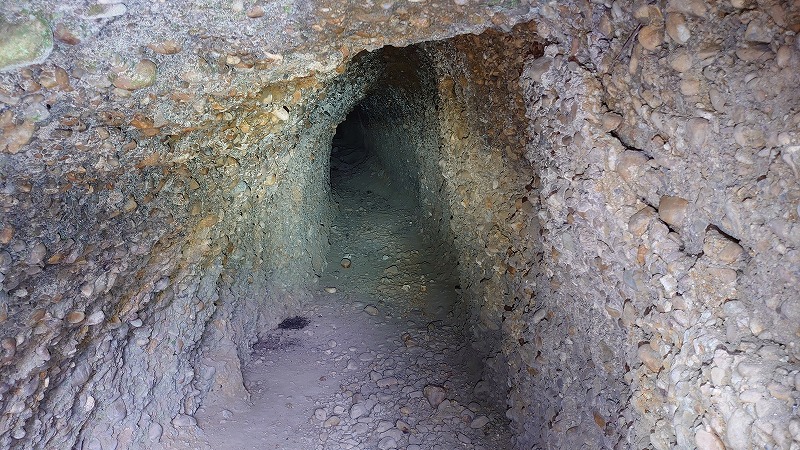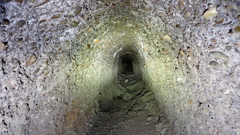 礫層の坑道ですが、崩落もほぼ無くしっかり残っています。