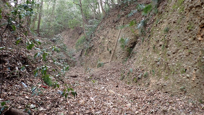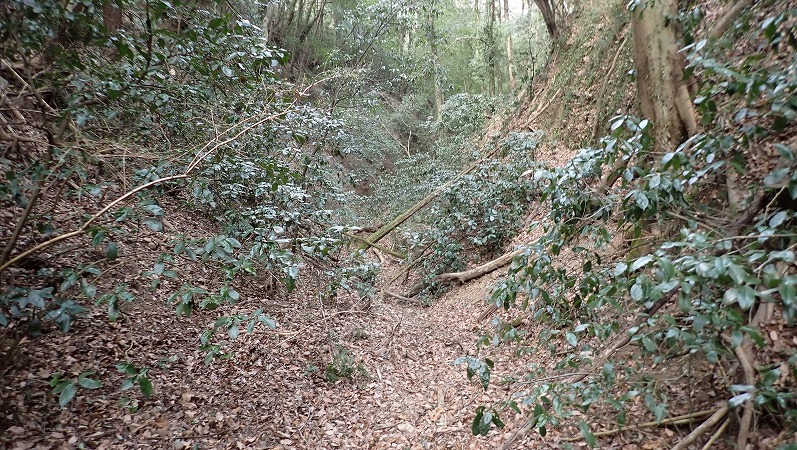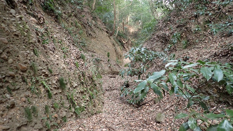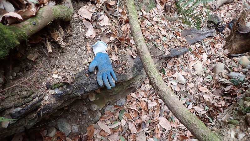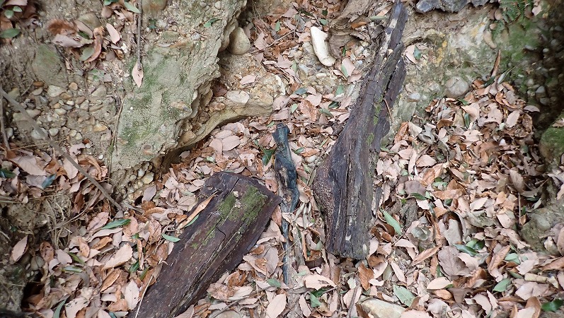 興亜炭鉱の坑道は概ねのポイントを事前に把握出来たので、興亜炭鉱の遺構付近から興亜炭鉱の坑道に一番近い山道から適当な斜面を下ります。