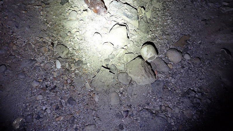鉱山時代の物かは分かりませんが、坑道内にはカップや湯飲みやガラス瓶など、色々と落ちています。