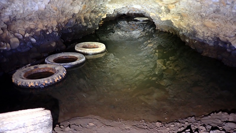 地滑り対策で炭鉱閉山後、この付近に多数の地下水誘導用の坑道が掘られたようなので、それの一部の可能性も有りそうです。